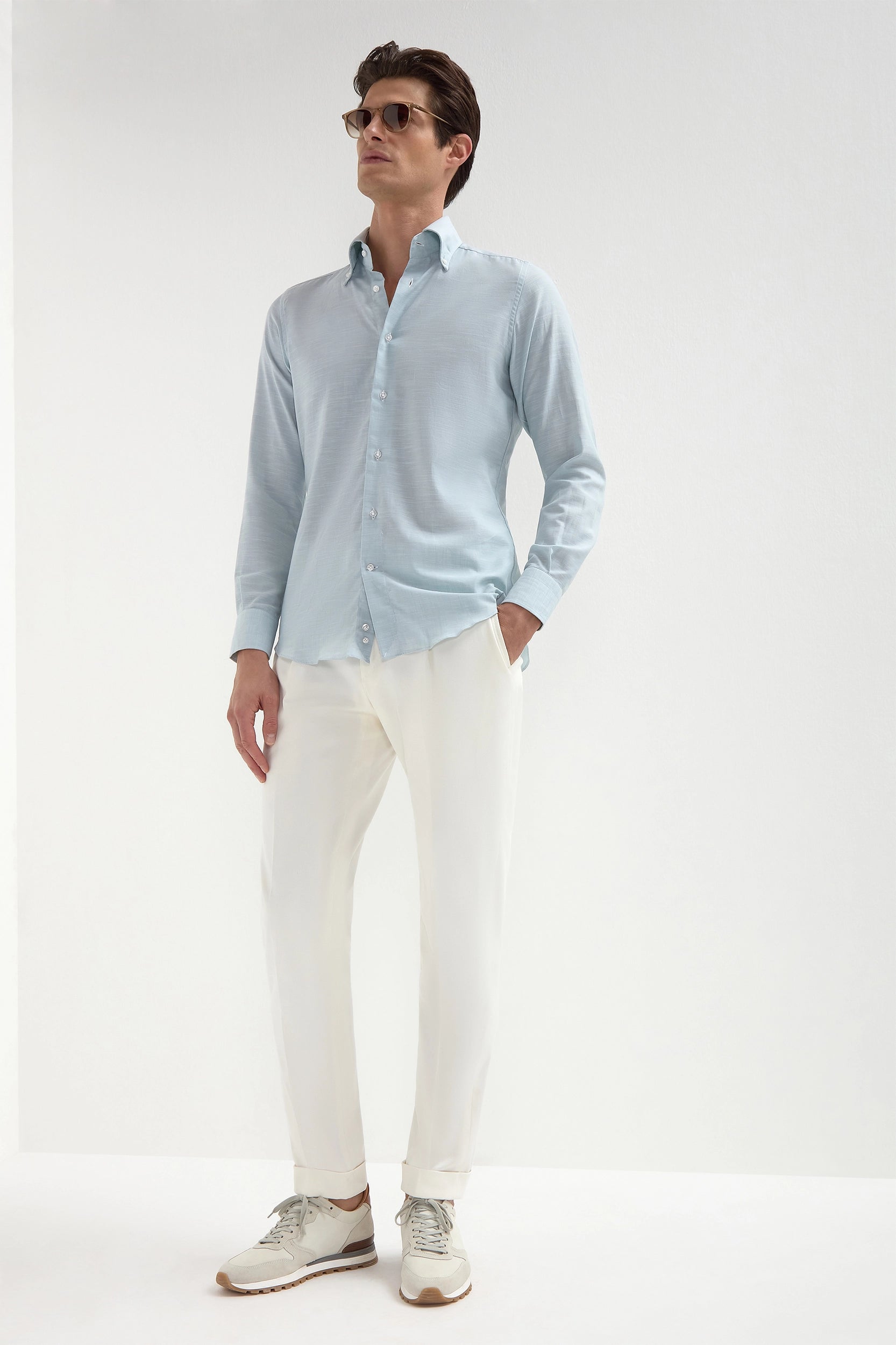 Water green chambray button down shirt - Made in Italy