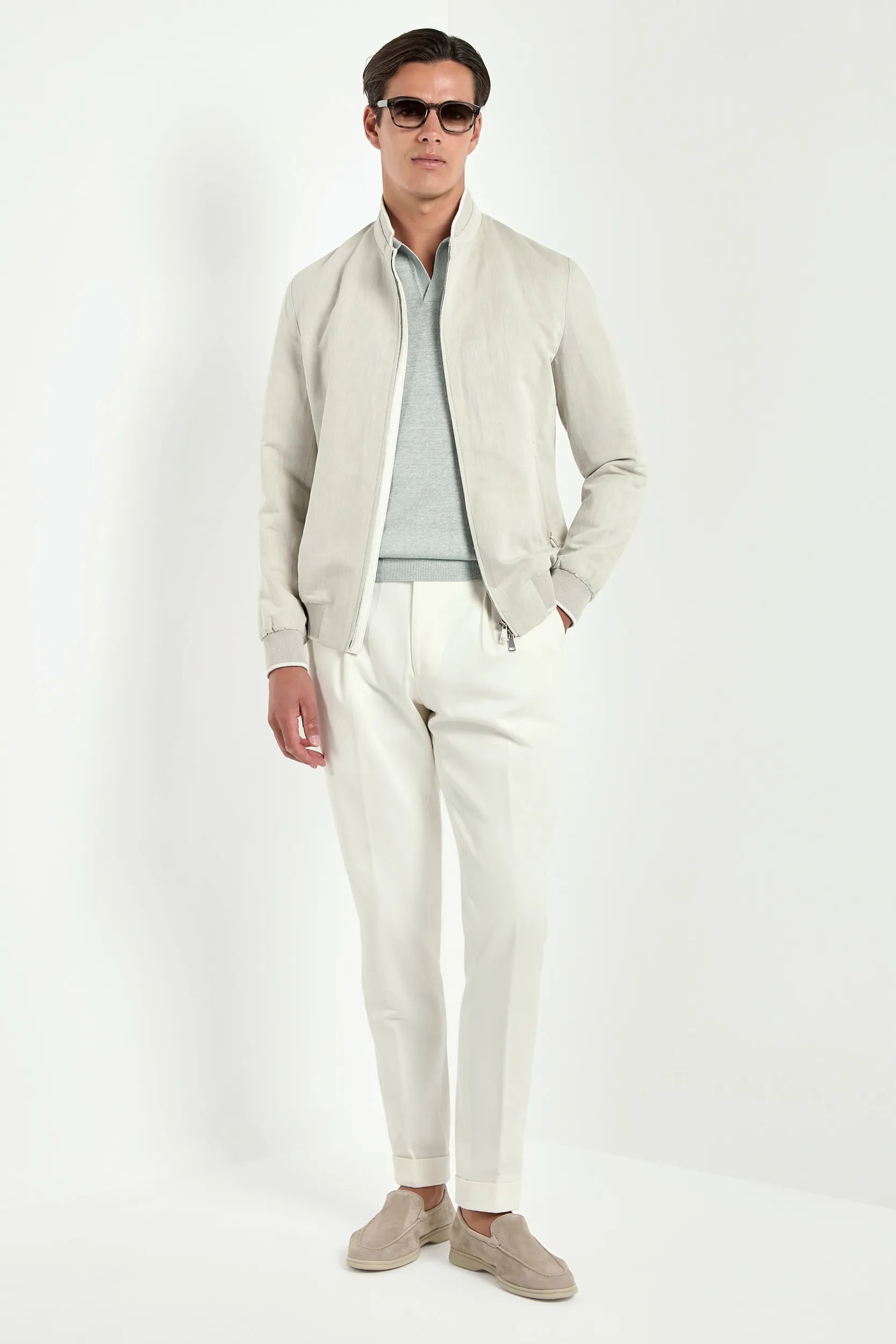 Sand linen and cotton bomber - Made in Italy