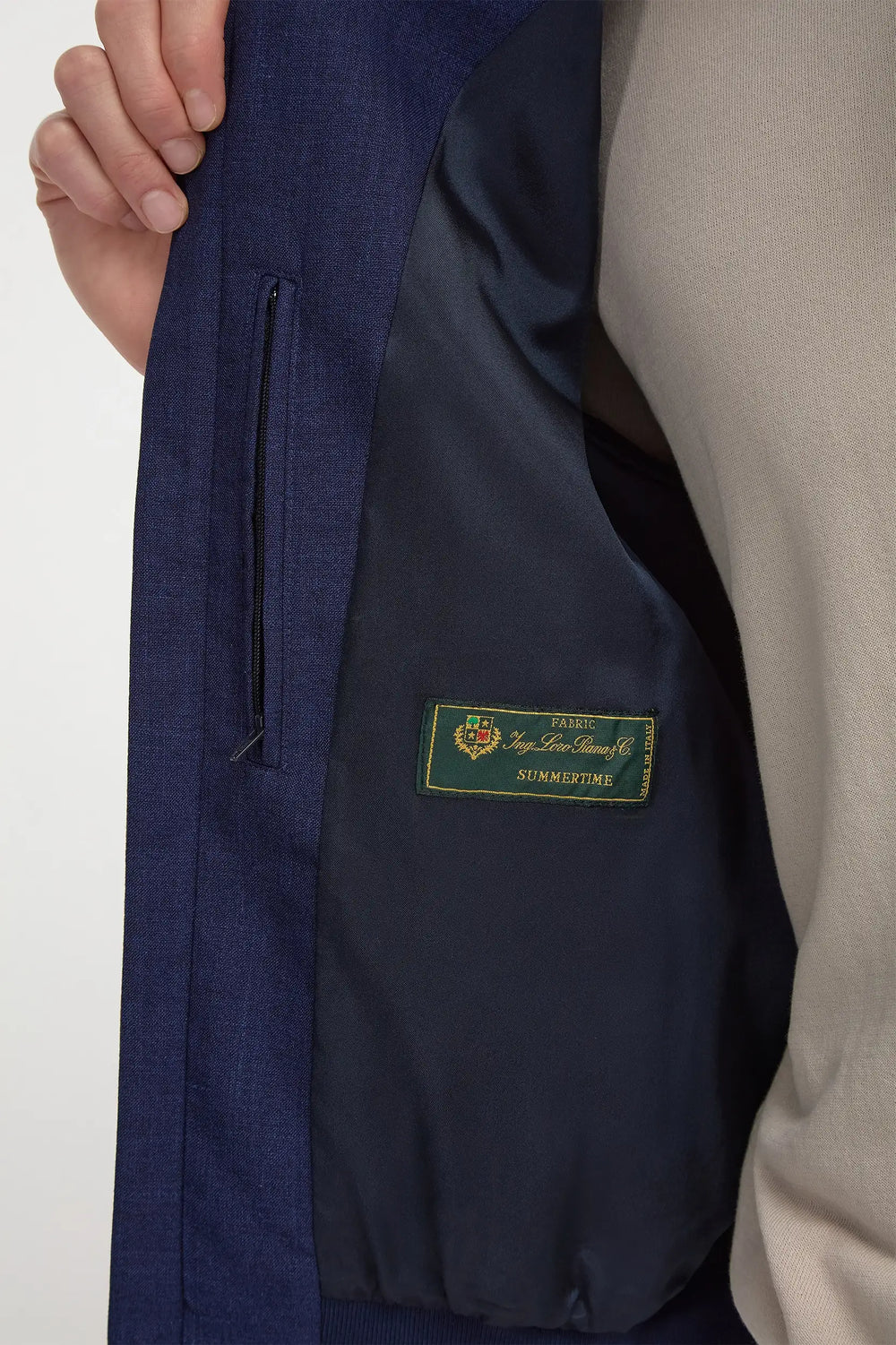 Crafted from a premium fabric from Loro Piana’s Summertime collection, this jacket masterfully combines wool, silk, and linen to offer the perfect balance of softness, lightness, and breathability, ensuring refined elegance and effortless comfort.