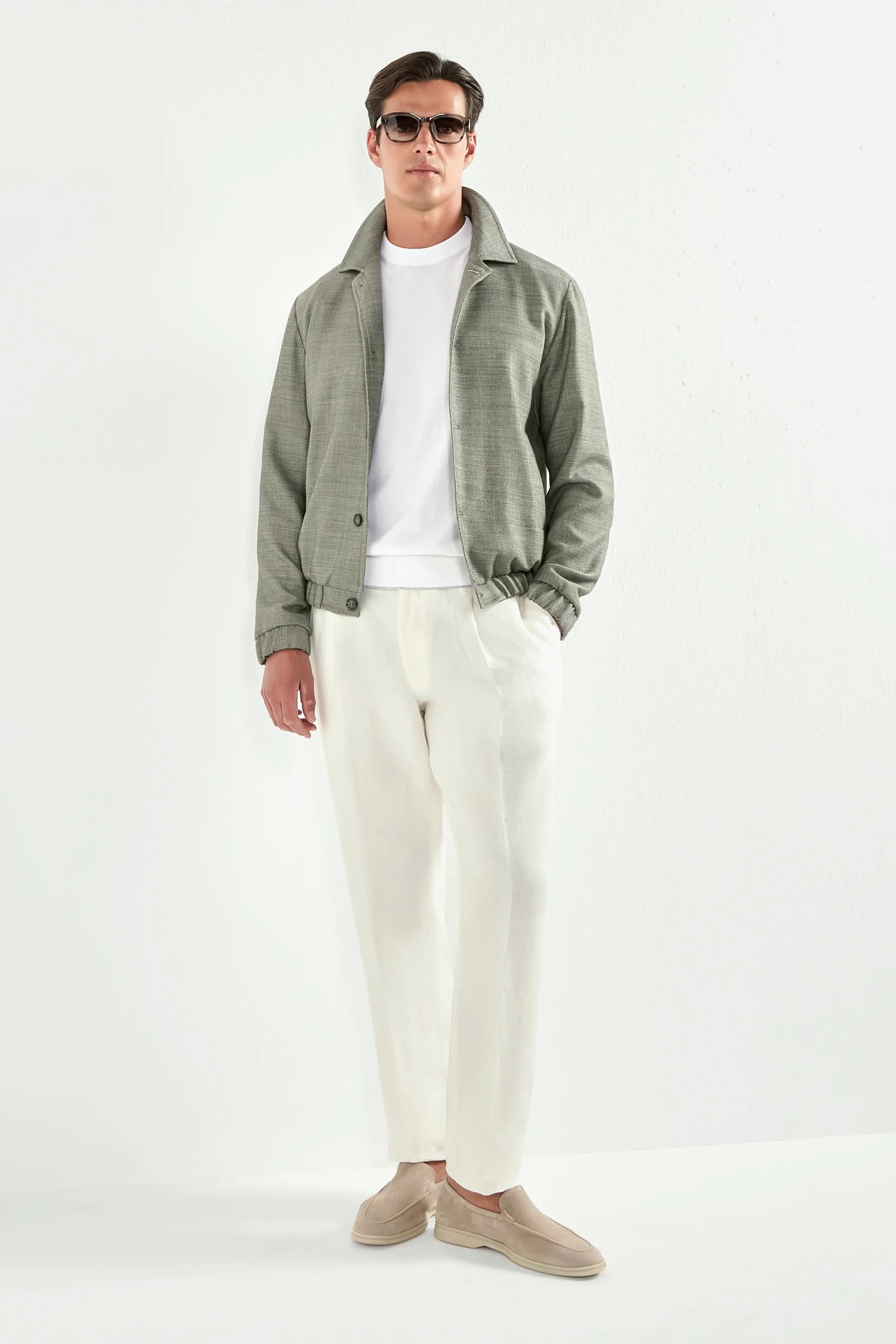 Sage linen blend bomber - Made in Italy