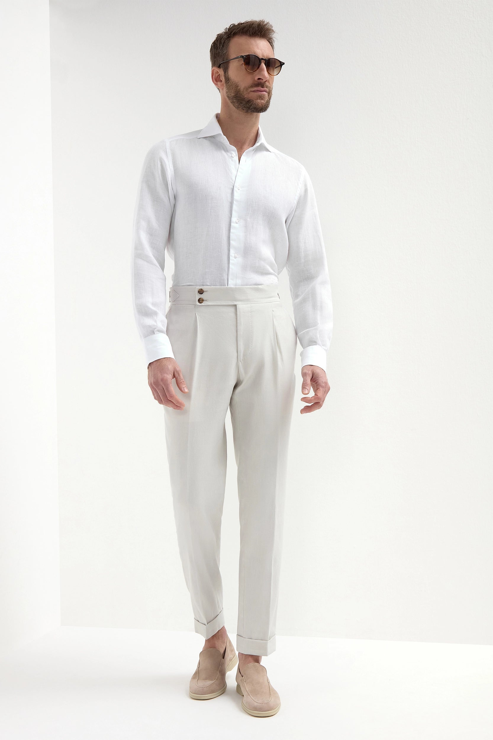 Tutti i nostri pantaloni sono forniti con un orlo non rifinito in modo da poter regolare la lunghezza a piacere. Consigliamo l'aggiunta di un risvolto da 4,5 a 5 cm.