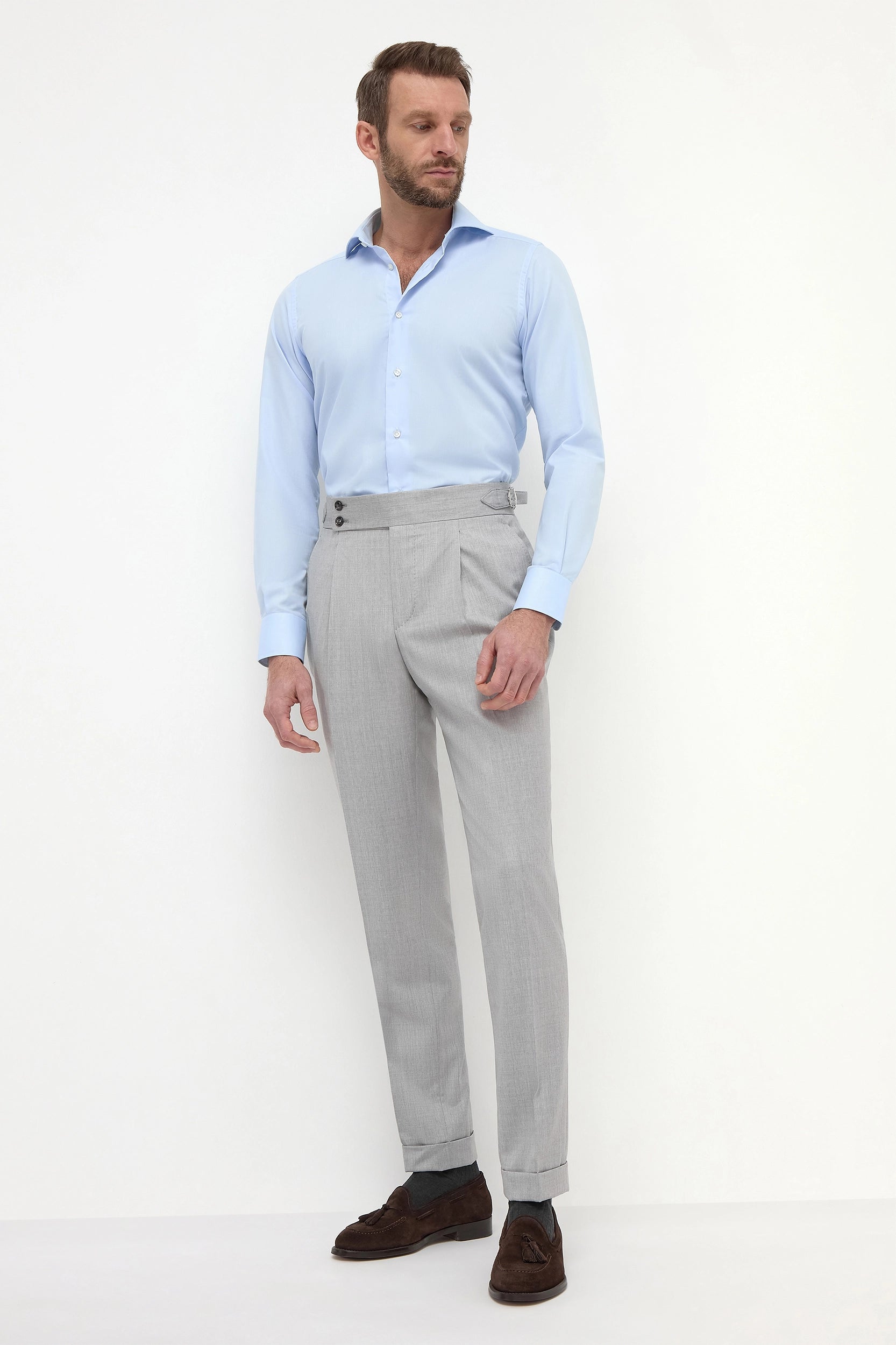 Il nostro iconico taglio Soragna presenta una vita alta e una vestibilità semi-slim, una grande cintura estesa a 2 bottoni, fibbie laterali e pinces singole. È il pantalone perfetto per ogni occasione e può essere facilmente indossato in modo elegante con camicia, cravatta e giacca oppure in modo casual con una semplice camicia o un maglione.