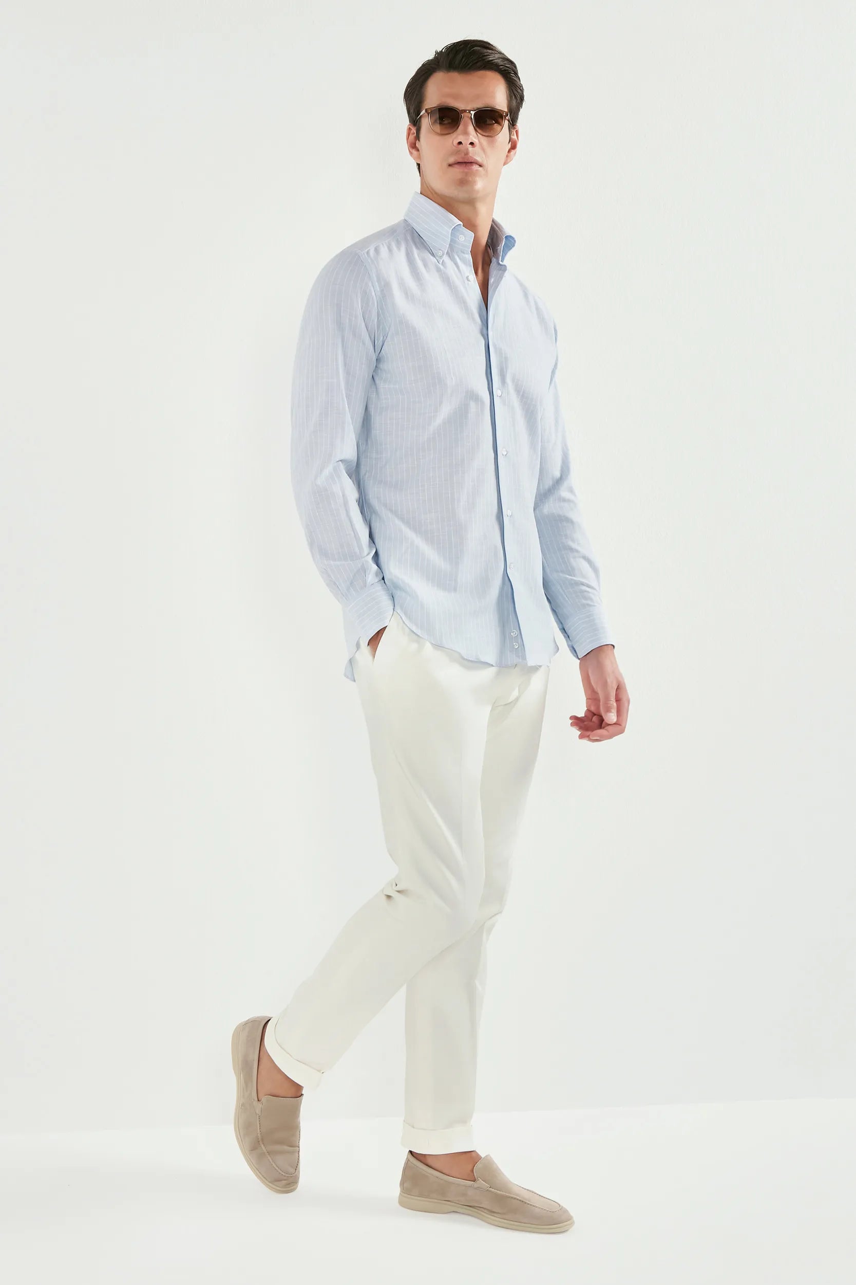 Camicia button down in chambray a righe azzurro chiaro - Made in Italy