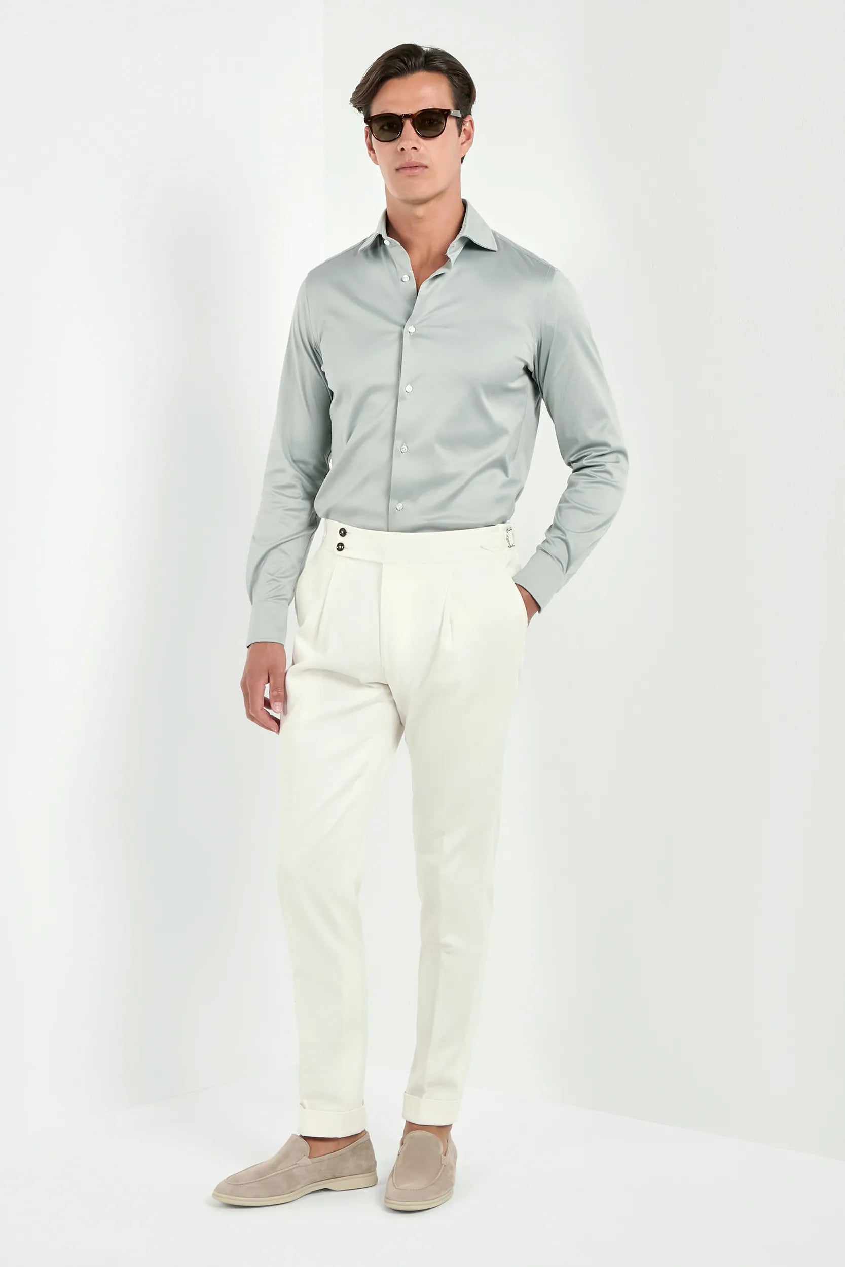 Camicia in cotone mercerizzato salvia chiaro - Made in Italy