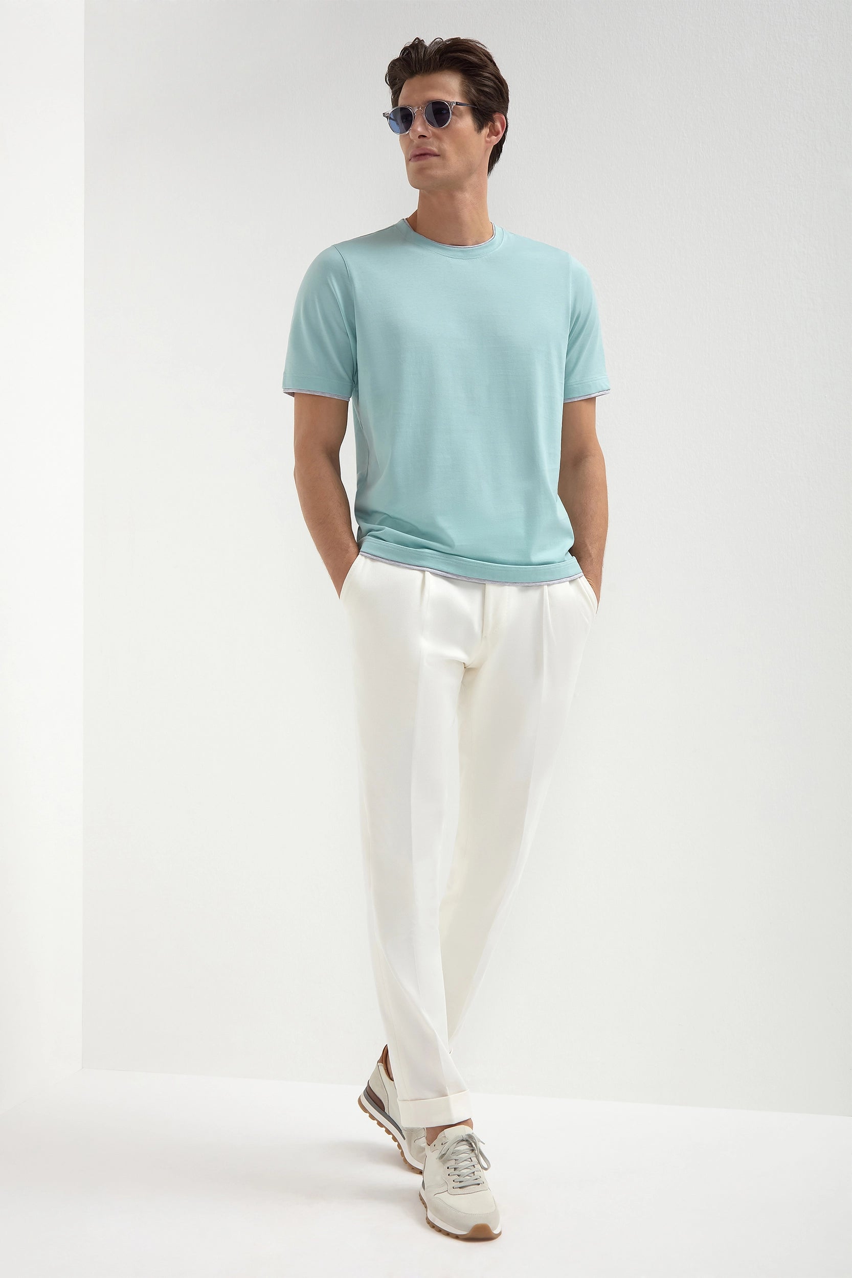 T-shirt in cotone menta con dettaglio collo - Made in Italy