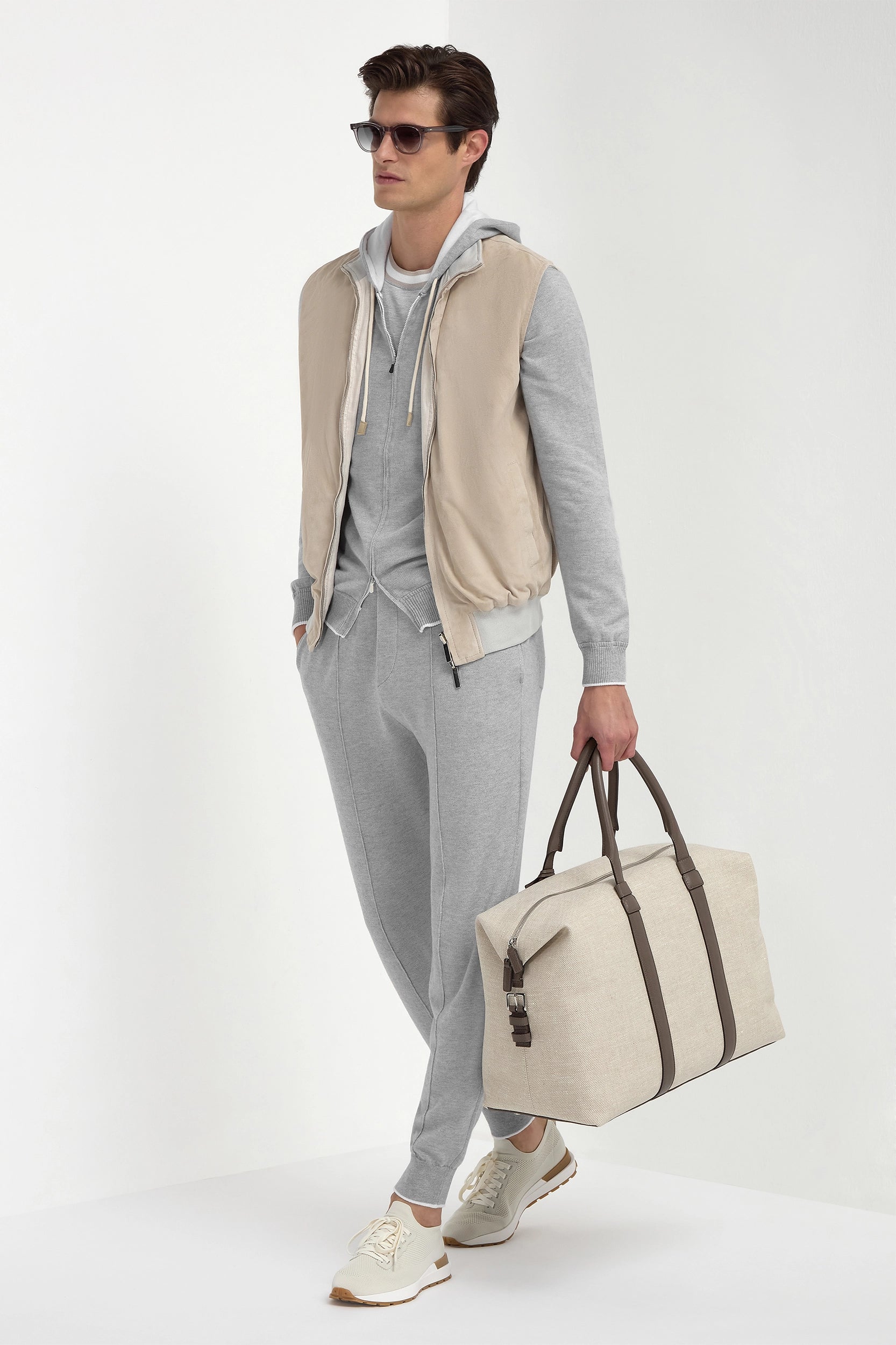 Borsa weekender in tela sabbia e pelle