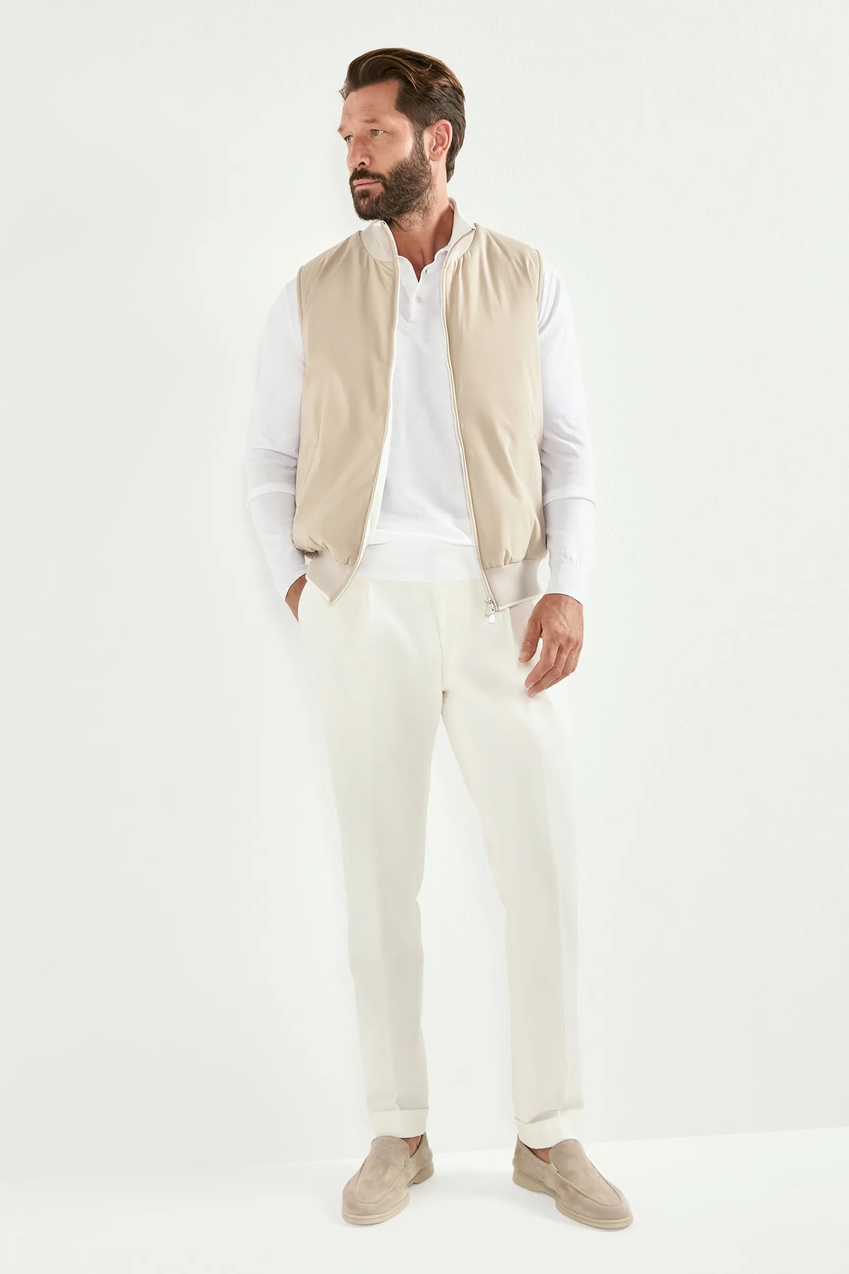 Gilet in nylon taupe - Made in Italy