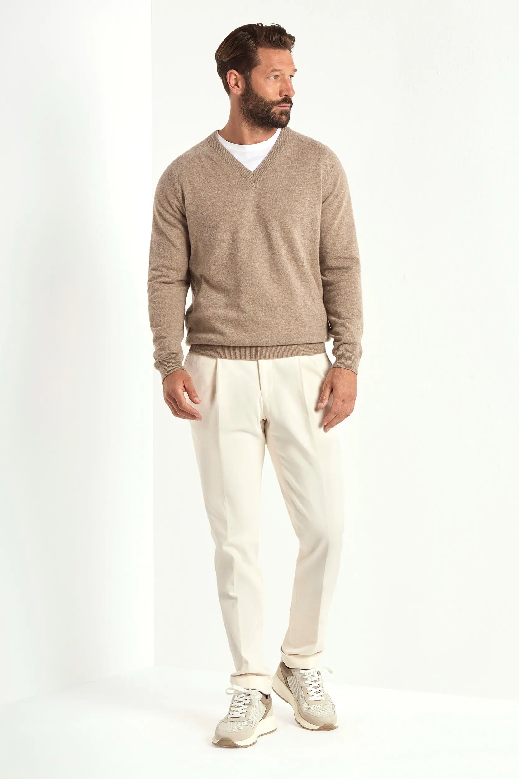 Maglione taupe scollo a V - Made in Italy