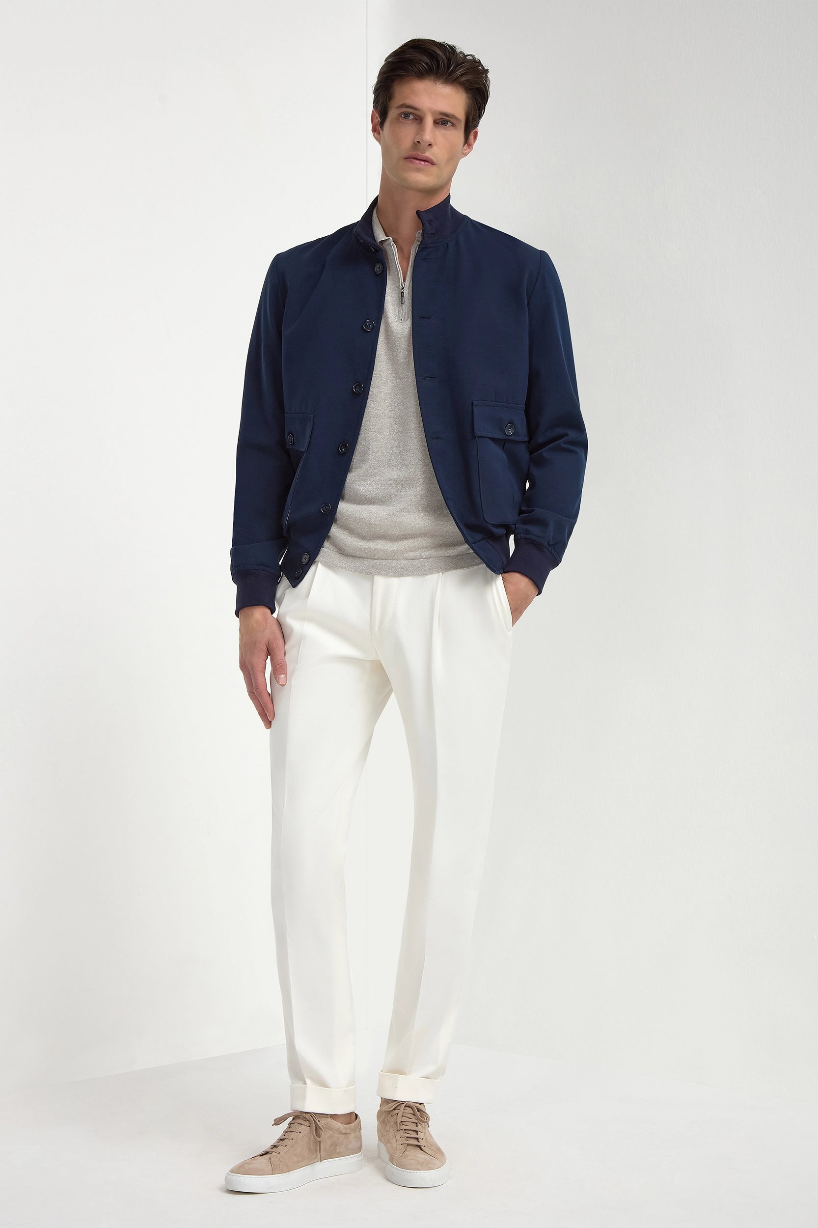 This versatile addition to a sartorial wardrobe will comfortably elevate any casual outfit and pair itself elegantly with our Soragna trousers, our denim and a knit or a shirt.