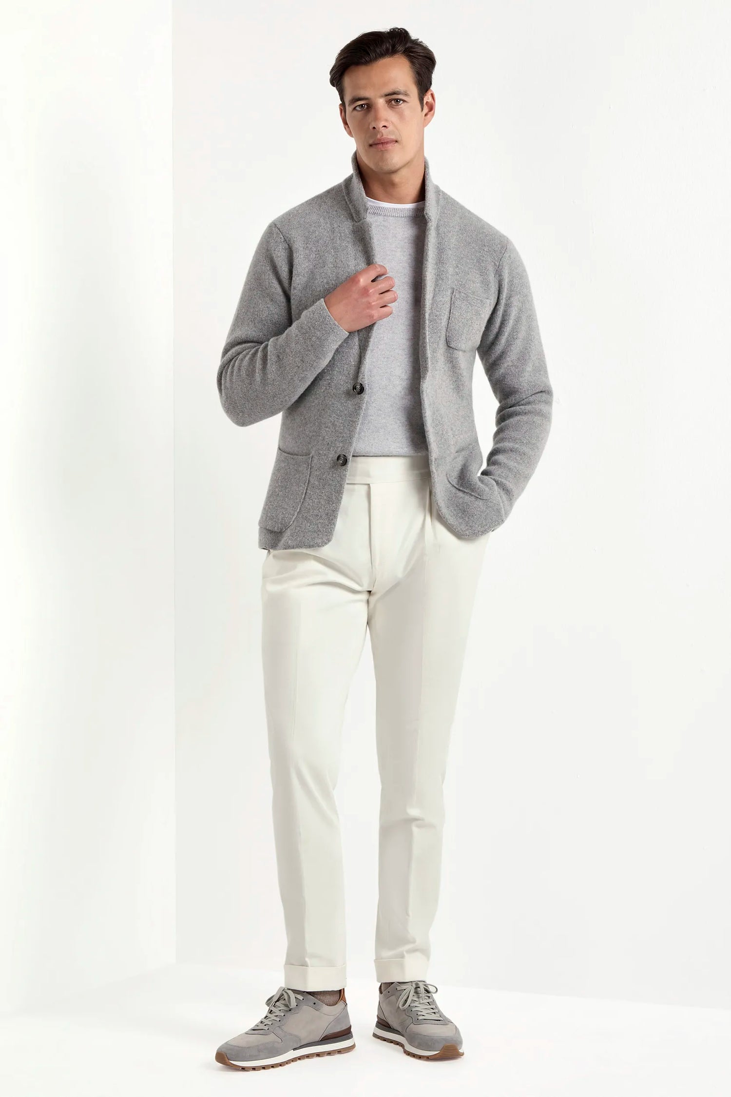 Wool and cashmere 2 buttoned knitted jacket with patch pockets. Warm and elegant, this versatile jacket combines the refined style of a jacket with the casual fit of a knitted garment.