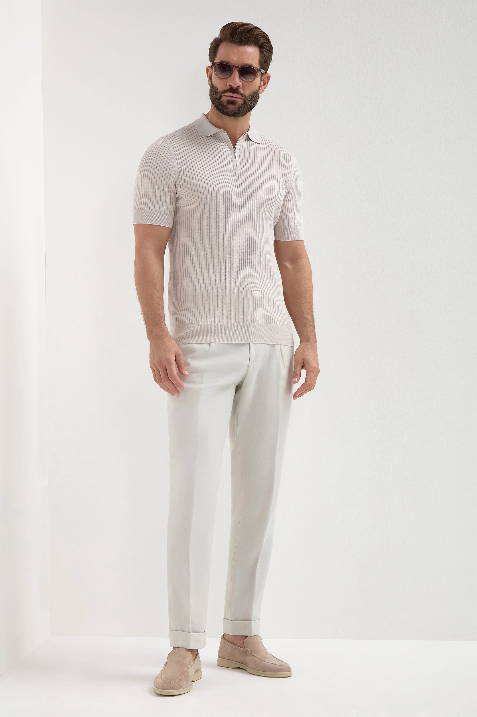 Stone thin rib zipped polo - Made in Italy