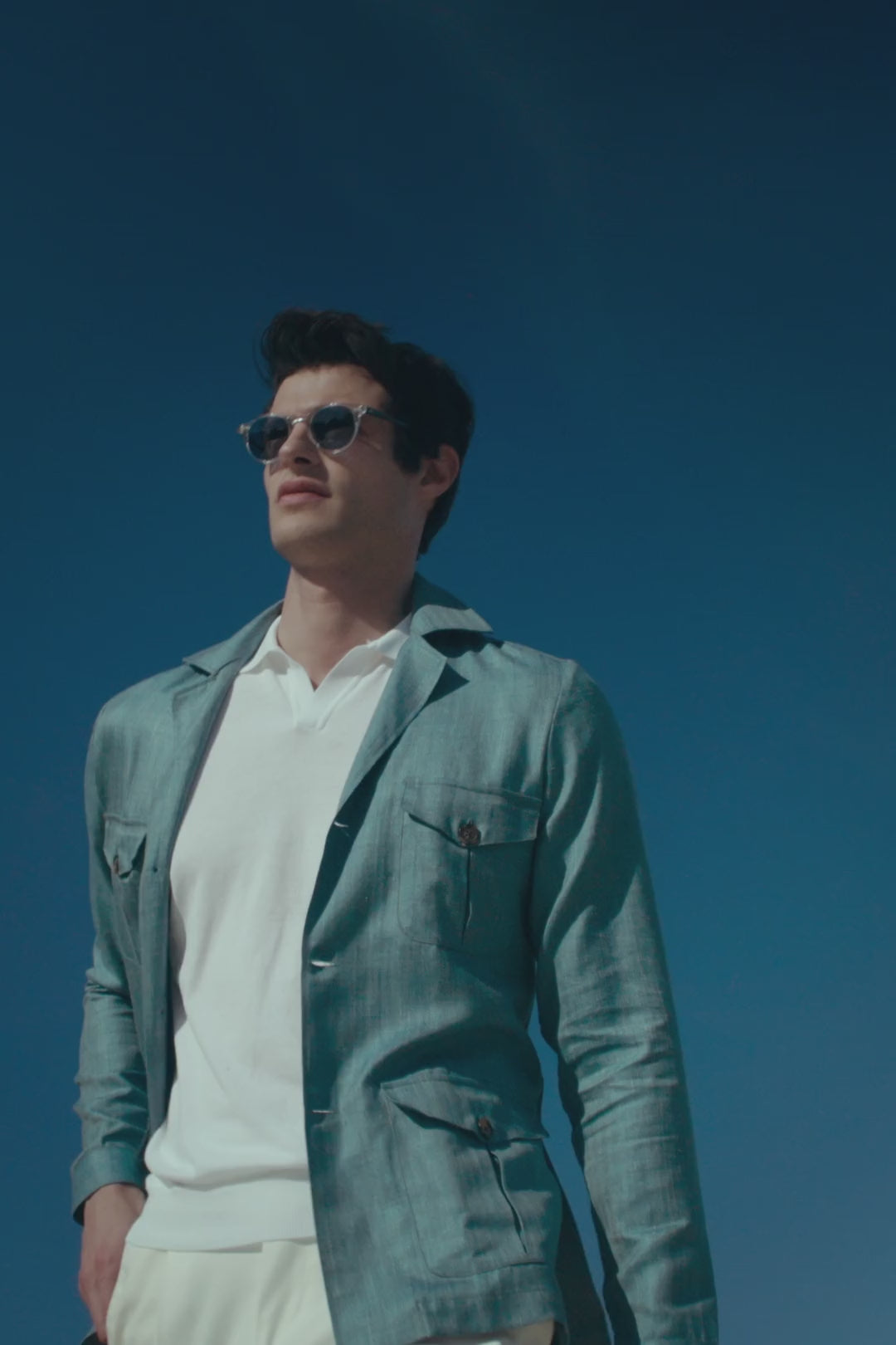 Water green Safari Jacket in wool silk and linen – Made in Italy