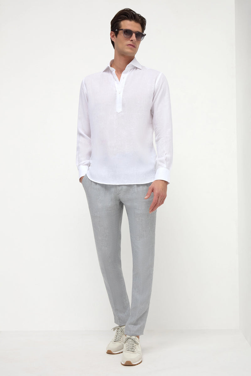 The popover version of our classic white linen shirt. It features a three-button placket for a more casual look.